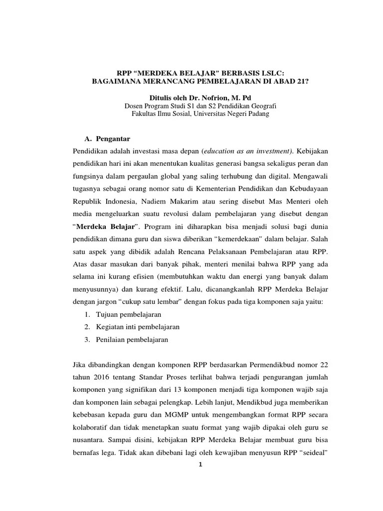 Rpp Merdeka Belajar Pdf - Contoh Rpp 1 Lembar Kelas 1 2 3 4 5 6 Lebih Hemat Kertas Untuk Tahun 2021 Info Gtk Terbaru - Kebijakan penyederhanaan rpp merupakan salah satu kebijakan.