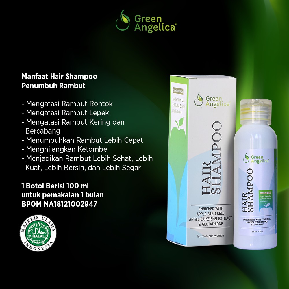 Obat penumbuh rambut rontok parah menghilangkan ketombe dan rambut bercabang berbahan alami dan aman hair shampoo green angelica.
